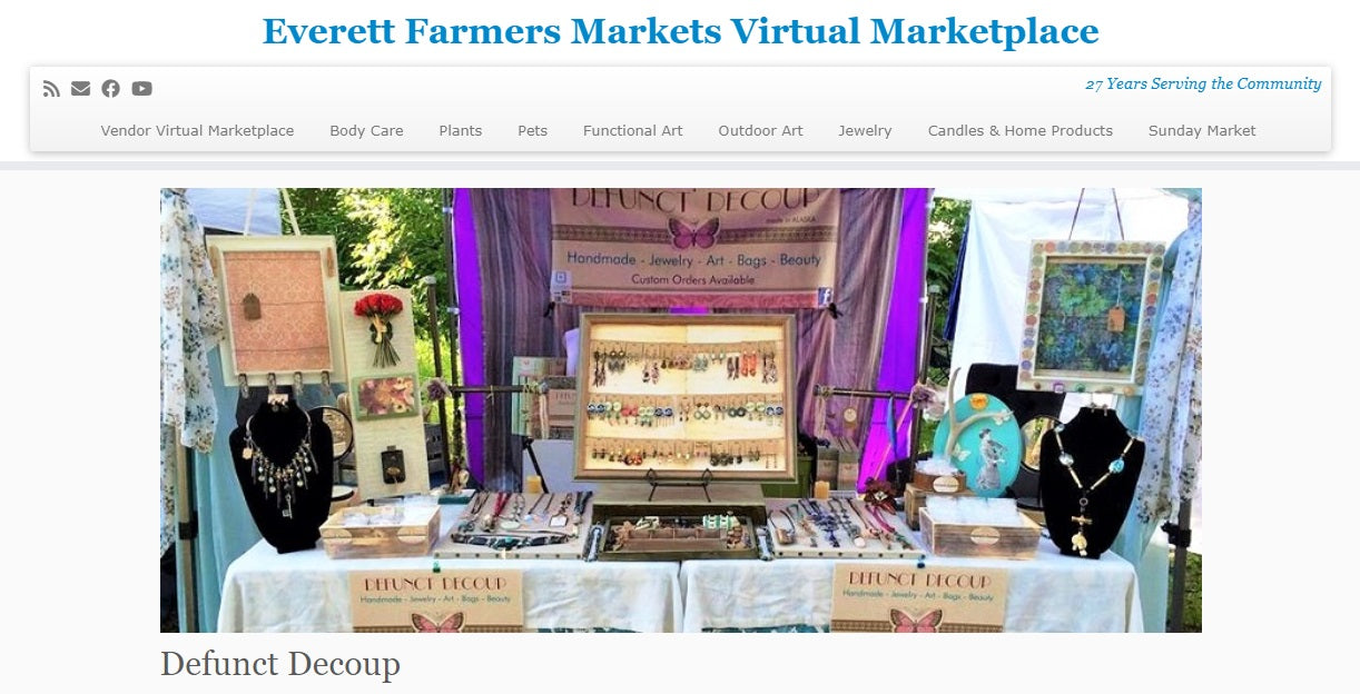 Due to Covid-19 and restrictions this summer season, Defunct Decoup is now participating in Everett Farmers Market Virtual Marketplace!